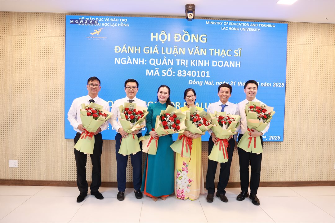 Ngày 31 tháng 10 năm 2025, tại phòng họp cơ sở 1 của Trường Đại học Lạc Hồng (LHU), 06 học viên ngành Quản trị kinh doanh đã xuất sắc hoàn thành và bảo vệ luận văn thạc sĩ của mình. Buổi bảo vệ diễn ra trong không khí trang trọng và đầy tính học thuật, đánh dấu một bước ngoặt quan trọng trong hành trình học tập và nghiên cứu của các học viên.