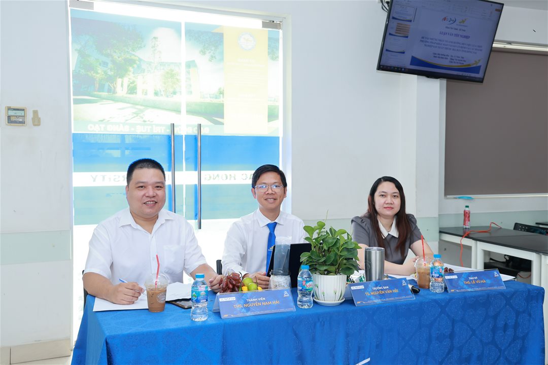 Không khí buổi báo cáo diễn ra nghiêm túc nhưng cởi mở, học thuật nhưng đầy cảm xúc. Sinh viên tự tin trình bày đề tài của mình, thể hiện khả năng phân tích, lập luận khoa học và xử lý dữ liệu thực tế. Các giảng viên phản biện và thành viên Hội đồng không chỉ đặt câu hỏi chuyên sâu về phương pháp nghiên cứu và tính logic của mô hình, mà còn gợi mở những hướng cải tiến giúp sinh viên nhìn nhận vấn đề toàn diện hơn.