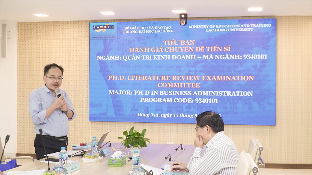 Ngày 15 tháng 9 năm 2025, tại phòng họp cơ sở 1 của Trường Đại học Lạc Hồng (LHU), 5 nghiên cứu sinh Phạm Quang Long, Trần Ngọc Tài, Phan Thị Hời, Huỳnh Thúc Hiếu và Phan Kim Tuyến ngành Quản trị kinh doanh đã hoàn thành buổi đánh giá chuyên đề Luận án tiến sĩ của mình.