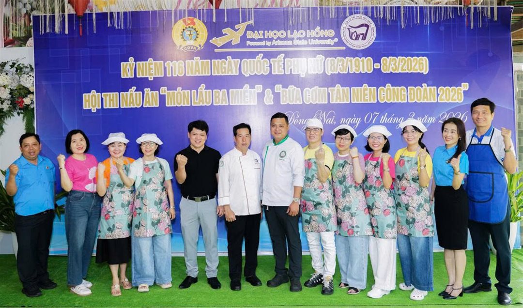 Sáng ngày 07/3/2026, tại Hội quán Trấn Biên, Công đoàn Trường Đại học Lạc Hồng đã tổ chức thành công Hội thi nấu ăn “Món Lẩu Ba Miền” chào mừng ngày Quốc tế Phụ nữ 8/3.