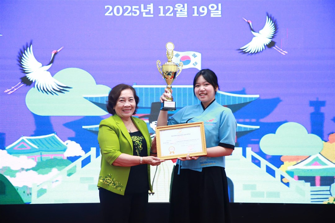 Sinh viên Đoàn Phụng Tiên - Hạng Nhất Khối Sơ Cấp Cuộc thi Hùng biện tiếng Hàn LHU lần thứ 11 năm 2025