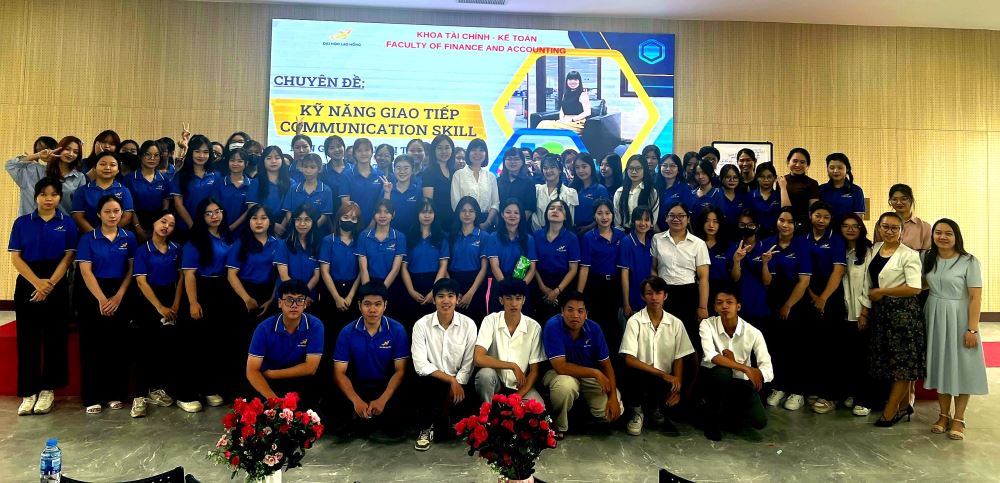 During this activity, Ms. Au Thi Thanh Thao shared profound experiences and knowledge about communication skills in the workplace. By presenting through specific and practical examples, she helped students gain a clearer understanding of the importance of communication skills and how to apply them in daily work.