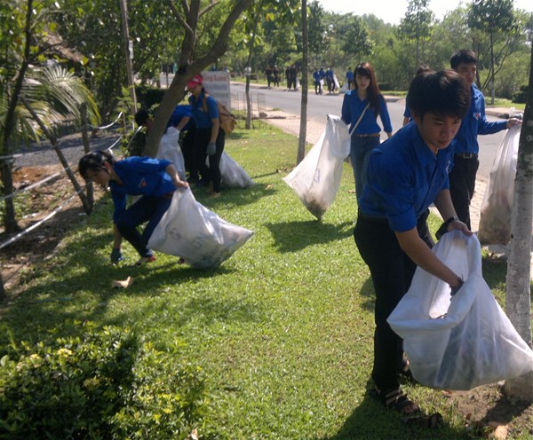 A large number of youth union members took part in the tet tree-planting at Tran Bien Temple of Literature, Bien Hoa city.
