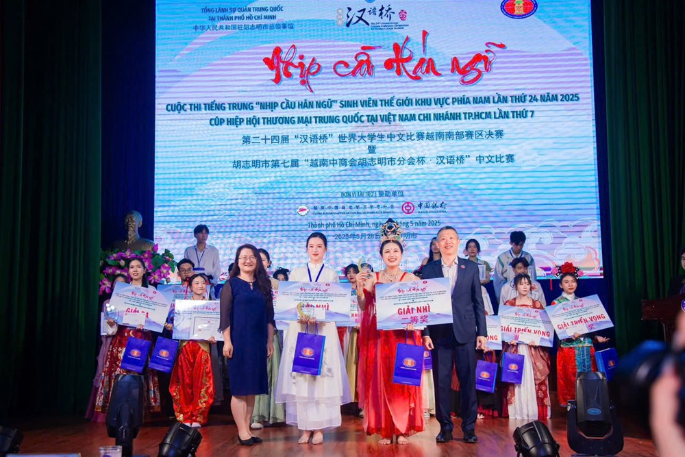 In celebration of the 75th anniversary of diplomatic relations between Vietnam and China and to promote cultural exchange, the University of Social Sciences and Humanities – VNU-HCM in collaboration with the Consulate General of China in Ho Chi Minh City, successfully hosted the 24th “Chinese Bridge” Chinese Proficiency Competition for College Students – 7th China Business Association Cup – Ho Chi Minh City Branch, Vietnam, 2025. Under the theme “Exploring Chinese Culture through Language, Travel, Education, Cuisine, and Arts”, the Competition attracted 28 contestants from 15 universities across southern Vietnam, creating a vibrant and meaningful academic platform.